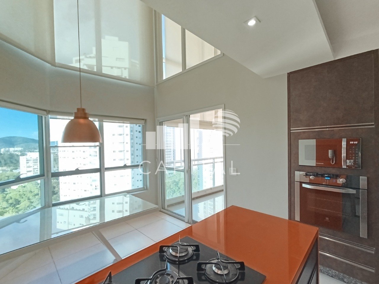 Cozinha moderna equipada com fogão, forno e micro-ondas